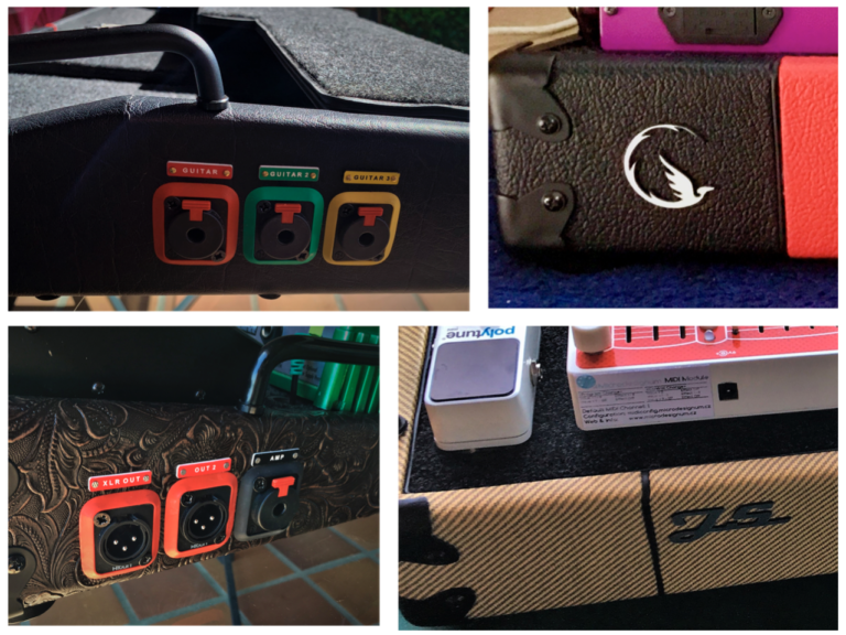 Puedes elegir también la conectividad externa de tu Pedalboard (IN, OUT, POWER, SEND, RETURN, MIDI, CTRL, D.I., etc), incluso el texto y el color de los rótulos, o de los marcos de cada uno de los conectores Neutrik-D externos. Puedes también añadir tu nombre, apodo, iniciales, o incluso tu logo o avatar, y así darle un toque individual y único.